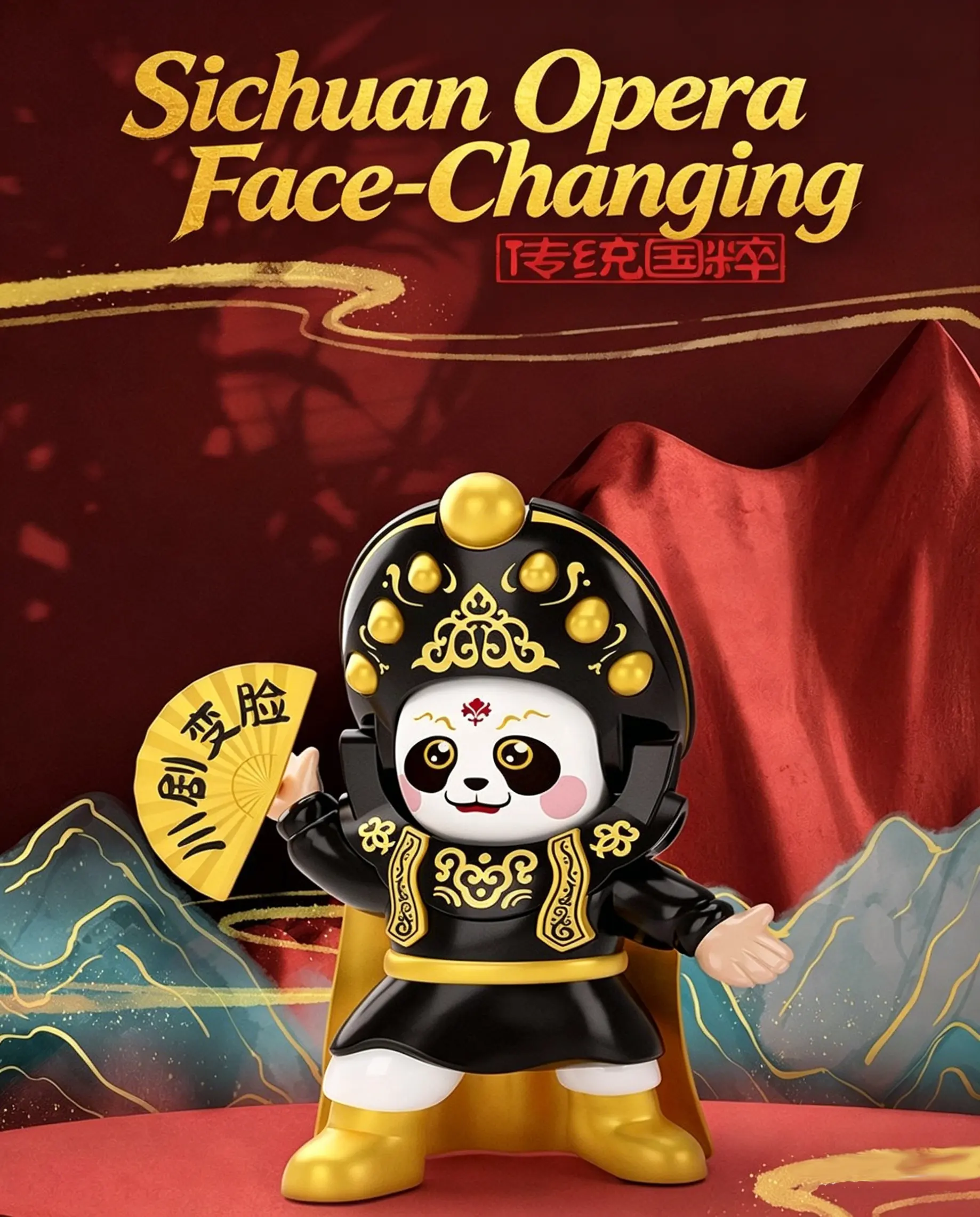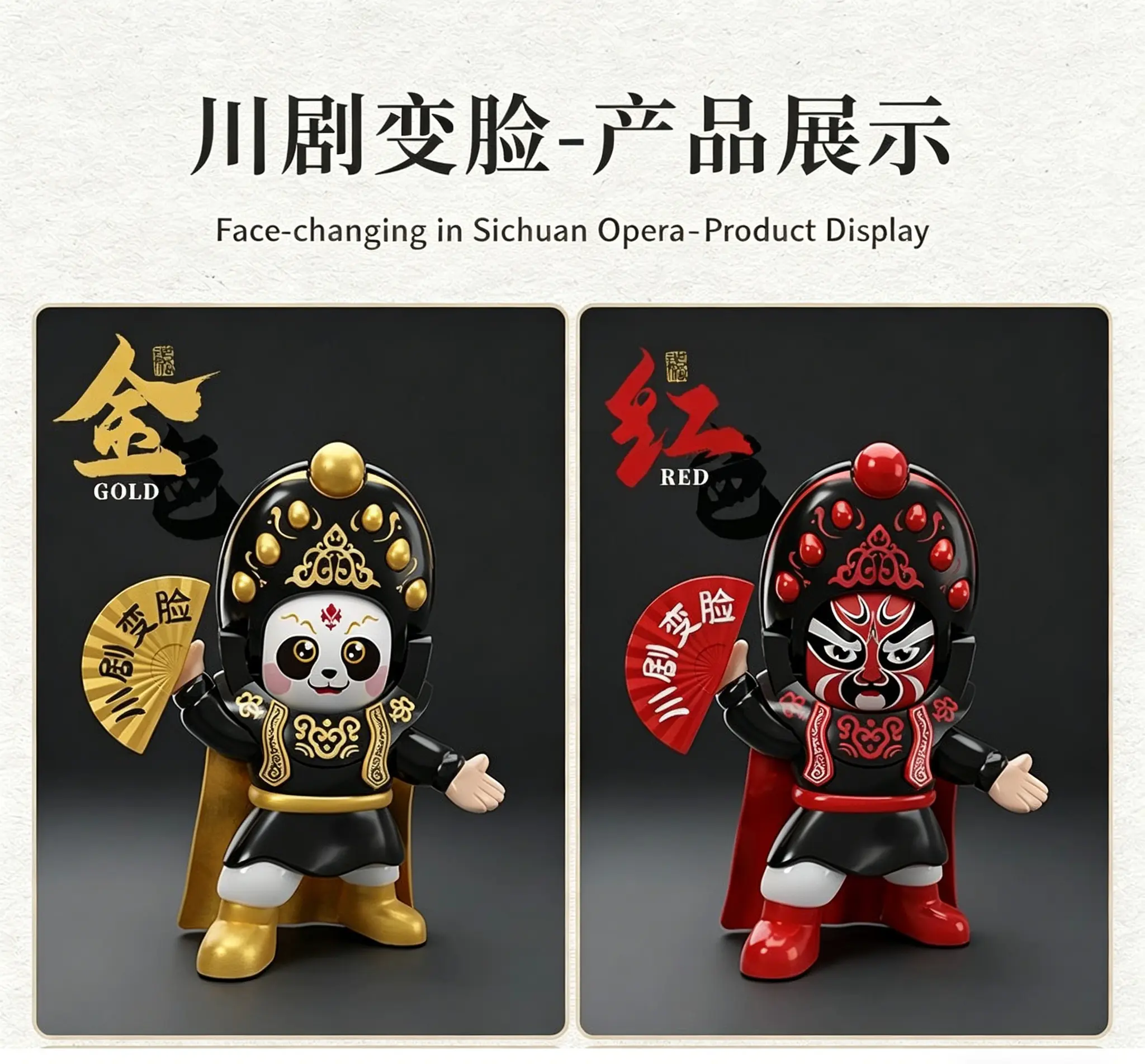 Sichuan Opera Face Changing Doll – 4 Masks Bian Lian Toy, Chinese Cultural Figurine Gift for Kids & Collectors